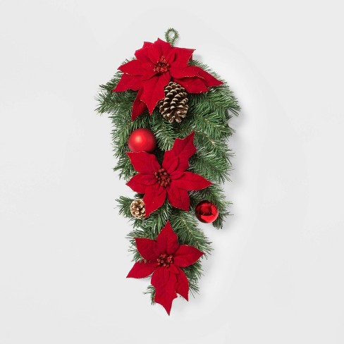 28in Christmas Unlit Red Poinsettia Ornaments Artificial Pine Swag Wondershop Target