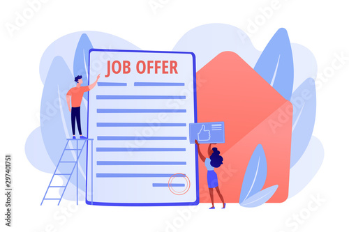 Successful Business Deal Employee Hiring Recruiting Service Job Offer Letter International Volunteer Program Permanent Contract Concept Pink Coral Blue Vector Isolated Illustration Buy This Stock Vector And Explore Similar Vectors At
