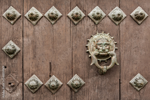 Old Wooden Door With A Bronze Head And Iron Rivets Interesting Old Rivets And Doorknocker In A Church From Mexico Buy This Stock Photo And Explore Similar Images At Adobe Stock