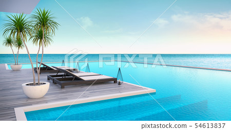 Beach Lounge Sun Loungers On Sunbathing Deck And Private Swimming Pool With Panoramic Sea View At Modern Villa3d Rendering Stock Photo Download Image Now Istock
