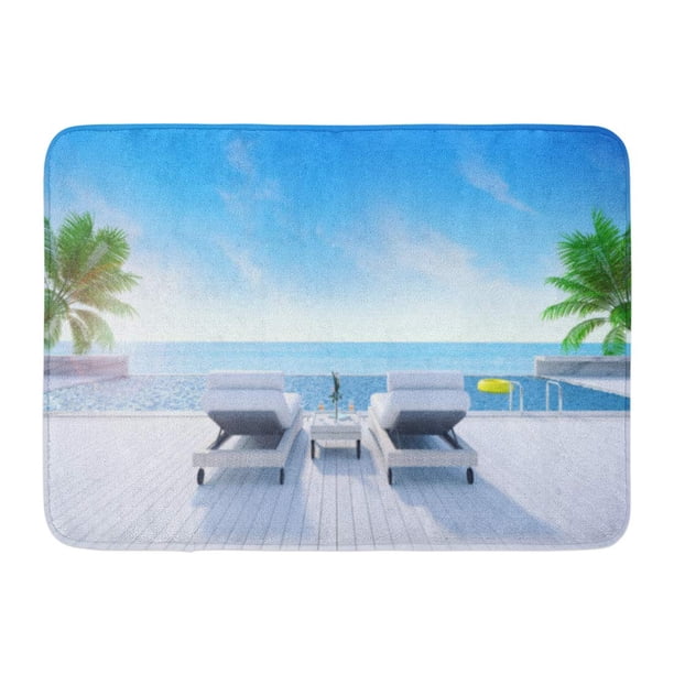 Godpok Relaxing Summer Sun Loungers On Sunbathing Deck And Private Swimming Pool With Near Beach And Panoramic Rug Doormat Bath Mat 23 6x15 7 Inch Walmart Com Walmart Com