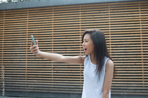 Picture Of Cheerful Cute Vietnamese Girl Having Video Conference Call With Friend Using 3g Or 4g