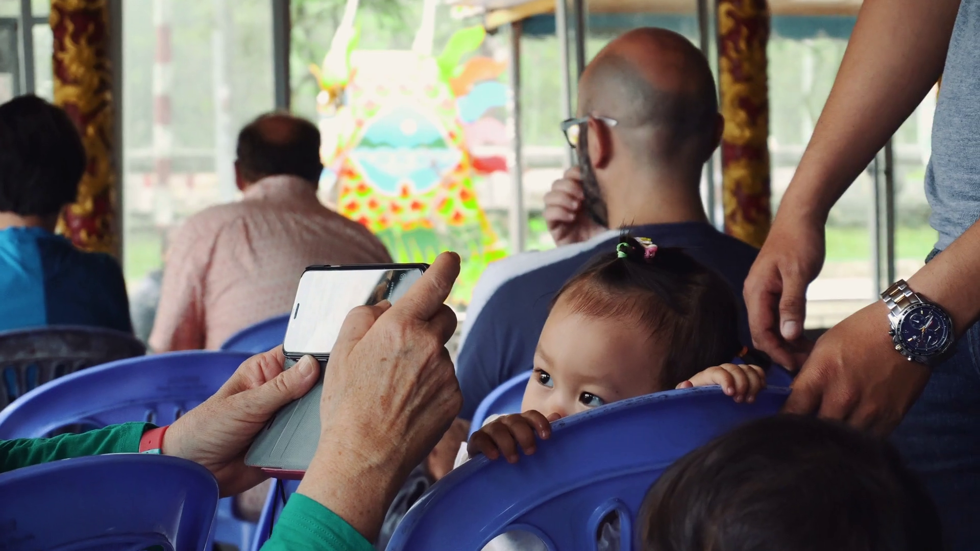 Over The Shoulder Shot On Woman Taking A Video With Her Phone Of Vietnamese Women Doing Traditional Dance Clipstock