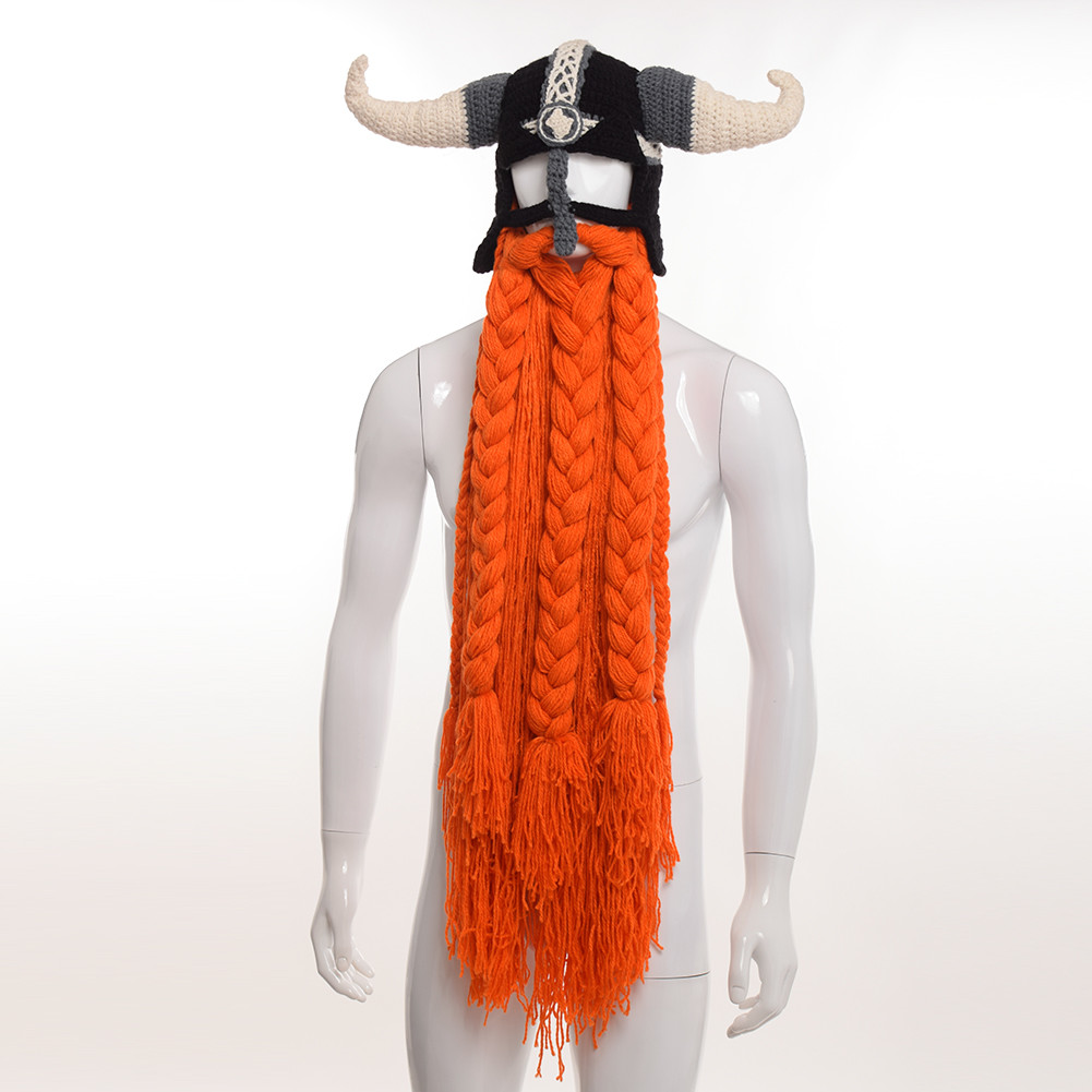 Men S Crochet Bearded Viking Hat Celtic Warm Beanie Halloween Cosplay Headwear For Sale Online Ebay