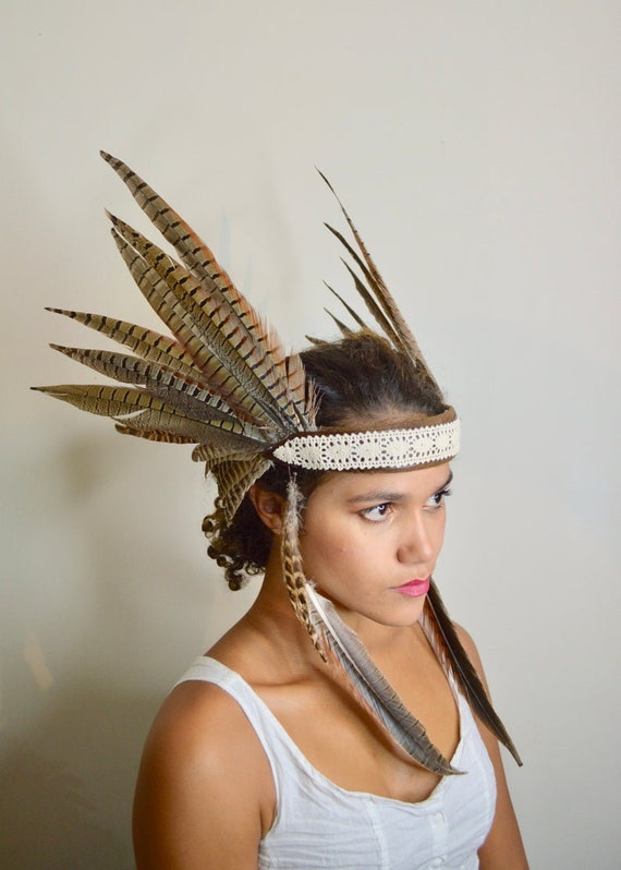 Pheasant Feather Valkyrie Headdress Crown Tribal Feather Etsy