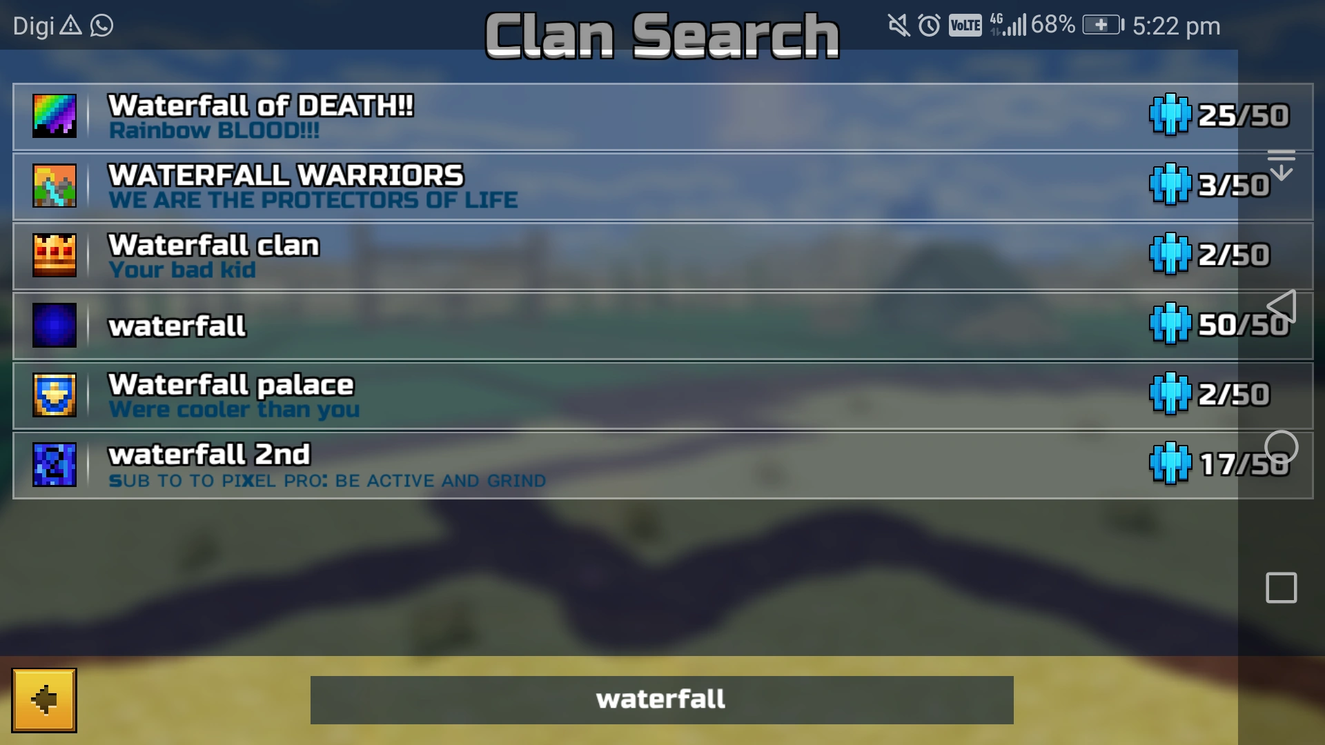 Is That Waterfall Clan Member I Constantly See Him Spamming Noobs In Candy Land The Clan Said Waterfall With A Bunch Of Numbers At The End Pixelgun