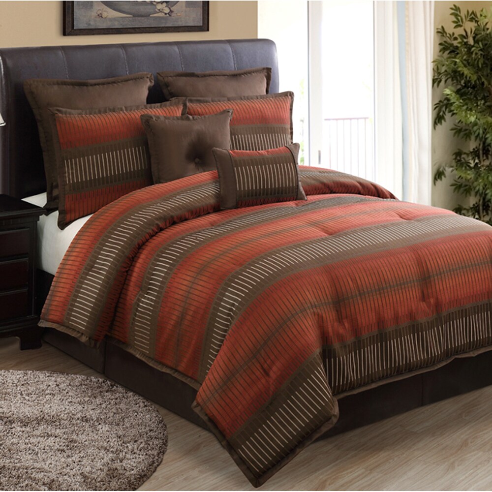 Amazon Com 8 Pc Spice Striped Comforter Set Brown Rust Tan W Matching Pillows Queen Home Kitchen