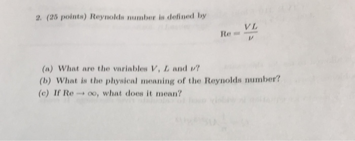 Solved 2 25 Points Reynolds Number Is Defined By Vl Re Chegg Com