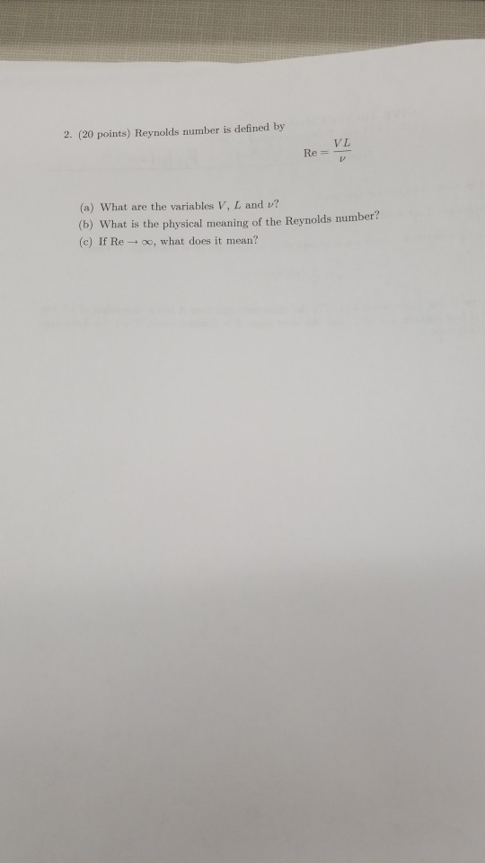 Solved 2 Points Reynolds Number Is Defined By Vl Re Chegg Com