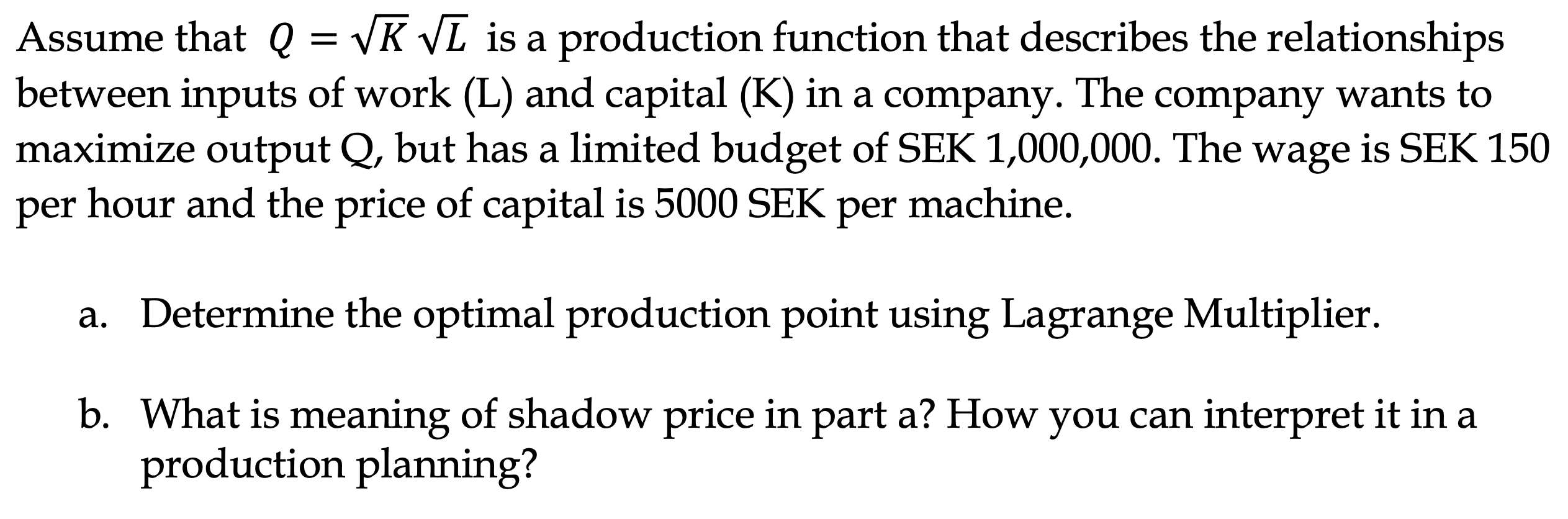 Solved Assume That Q Vk Vl Is A Production Function Tha Chegg Com