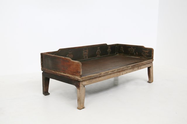 Antique Ming Period Carved Wood And Rattan Sofa Bed For Sale At Pamono