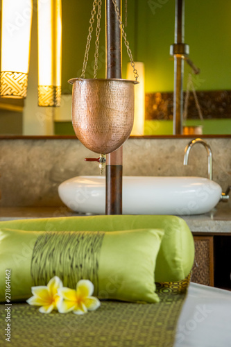 Ayurveda Spa Treatment Copper Vessel For Shirodhara Oil Dripping Treatment Setup No People Buy This Stock Photo And Explore Similar Images At Adobe Stock Adobe Stock