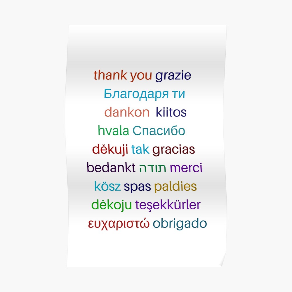 Thank You In Different Languages Poster By Hellcom Society6