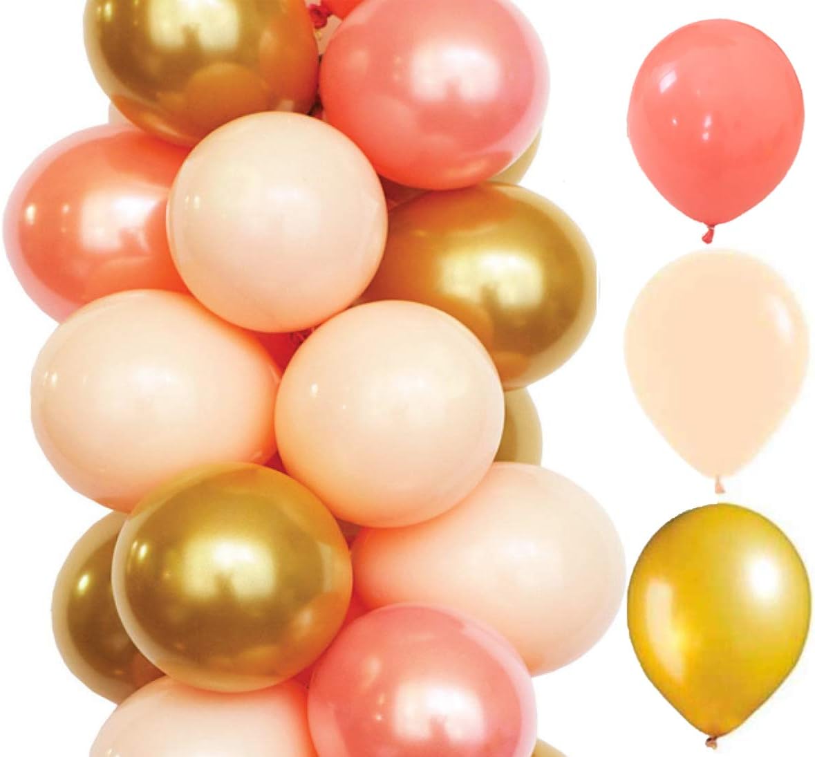 Amazon Com 60 Pack 12 Inch Coral Peach Gold Party Balloon Birthday Wedding Balloons Garland Baby Shower Bridal Shower Party Centerpieces Backdrop Event Accessory Toys Games