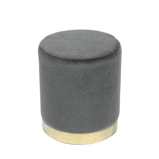 Adeco Small Round Ottoman Upholstered With Gold Plating Metal Base Footstool Rest Extra Seat Small Living Room Ottomans Footrest Gray Walmart Com Walmart Com