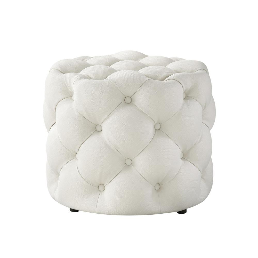 Inspired Home Marianna Cream White Linen Tufted Allover Upholstered Round Ottoman On94 03cw Hd The Home Depot