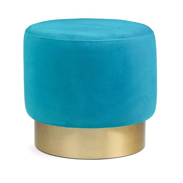 Helena Velvet Small Round Ottoman Overstock