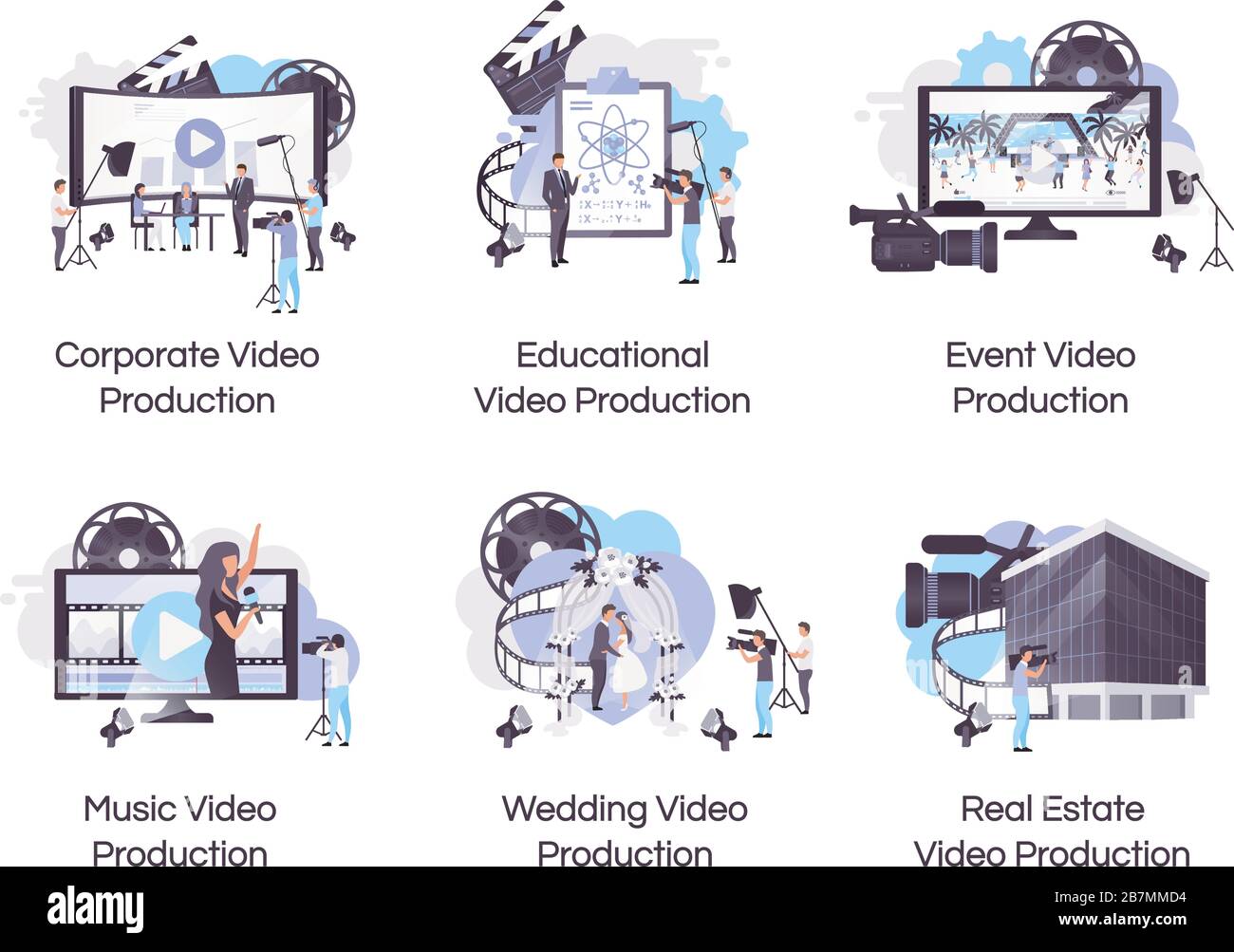 Video Production Flat Concept Icons Set Stock Vector Image Art Alamy