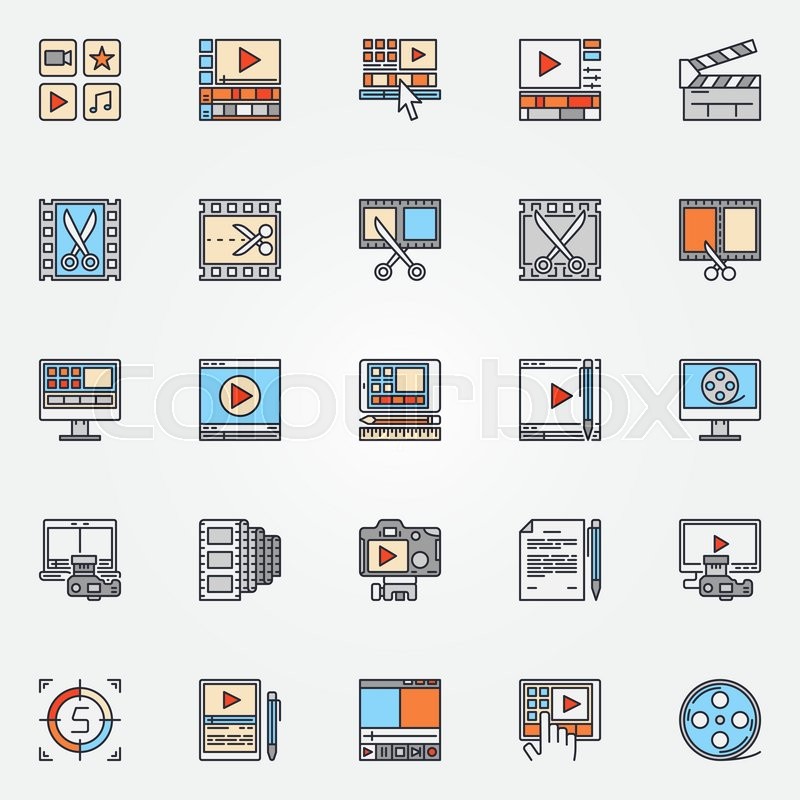 Video Production Icons Set Vector Collection Of Flat Video Edit Symbols Video Editing Colorful Signs Canstock
