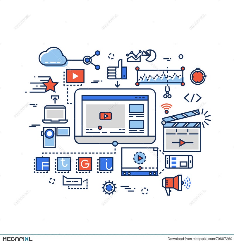 Video Production Media Digital Marketing Clip And Film Making Youtuber Vector Concept With Flat Line Icons Illustration Megapixl