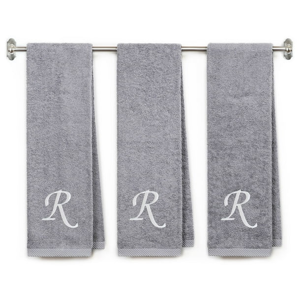 Embroidered Terry Cotton Gym Fitness Towel For Men Women Girls Boys Terry Cotton Gym Fitness Towel 13 X 44 Inches 3 Pack Silver Color Towel White Script Initial R Walmart Com Walmart Com