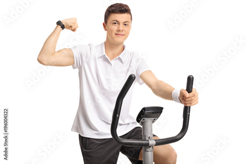 Teenage Boy Riding An Exercise Bike And Flexing His Biceps Buy This Stock Photo And Explore Similar Images At Adobe Stock Adobe Stock