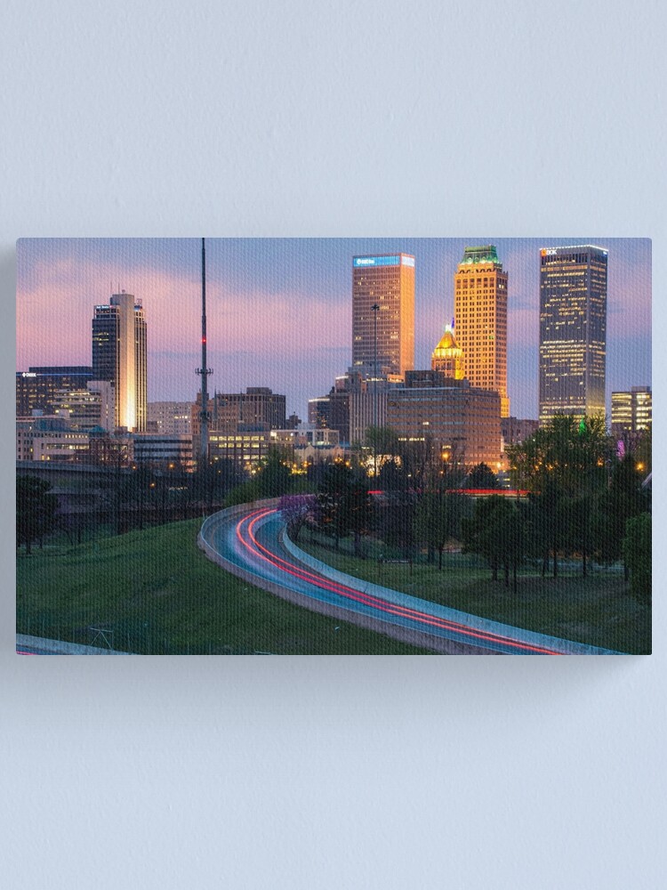 Downtown Tulsa Skyline On The Freeway Canvas Print By Enjoysshooting Redbubble