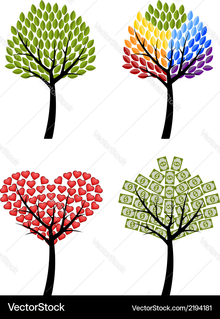 Set Trees Eco Rainbow Hearts Money Concept Vector Image
