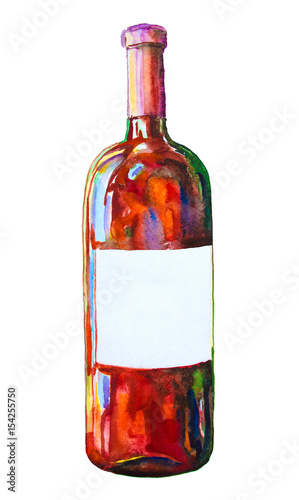 Hand Drawn Watercolor Illustration Of The Wine Bottle And One Stock Photo Picture And Royalty Free Image Image