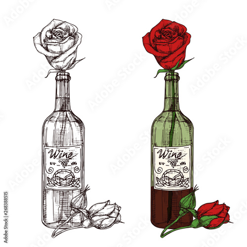 Hand Drawn Sketched Rose In Wine Bottle Vector Illustration Red Rose In Wine Bottle Alcohol Beverage Drawing Buy This Stock Vector And Explore Similar Vectors At Adobe Stock Adobe Stock