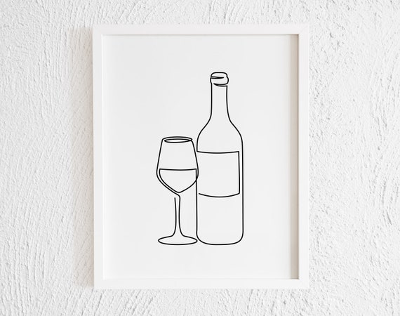 Wine Glass And Bottle Line Art Printable Kitchen Wall Decor Etsy