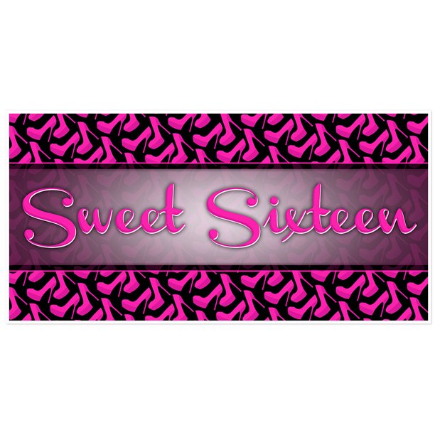 Pink Shoe Pattern Sweet 16 Sixteen Birthday Banner Walmart Com Walmart Com