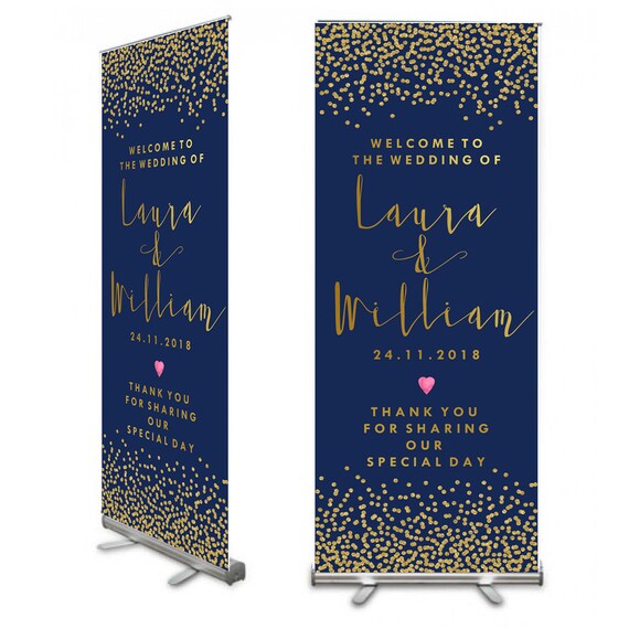 Navy Gold Confetti Roller Banner Pop Up Banner Wedding Etsy