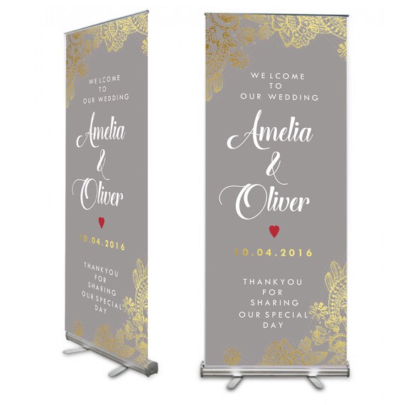 Grey Gold Lace Detail Wedding Welcome Banner Etsy
