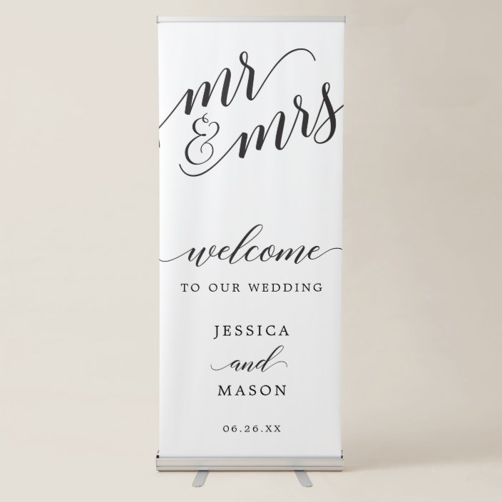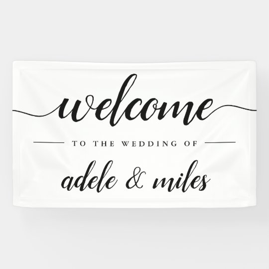 Black White Calligraphy Wedding Welcome Banner Zazzle Com