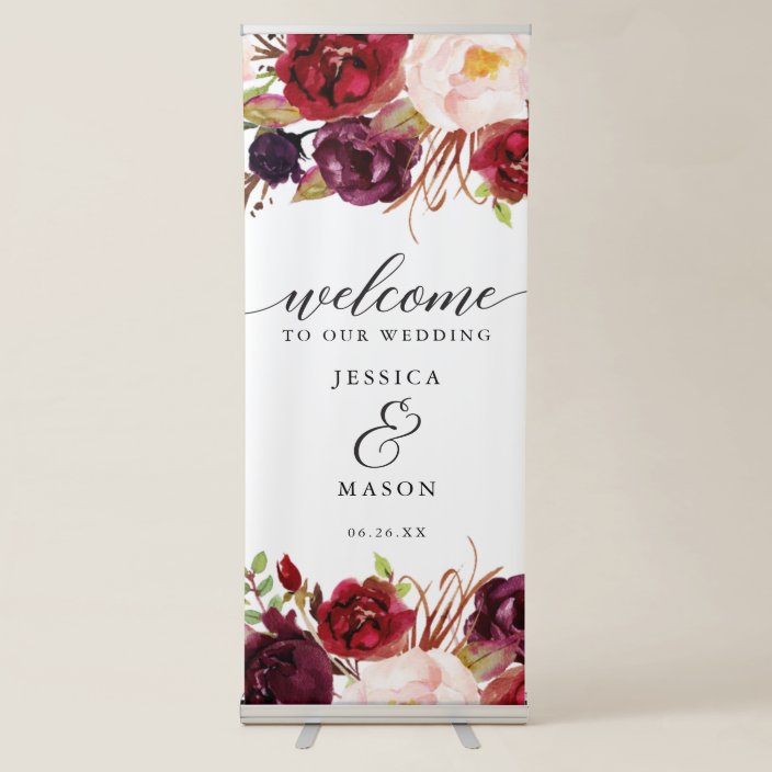 Elegant Burgundy Floral Welcome Wedding Banner Zazzle Com