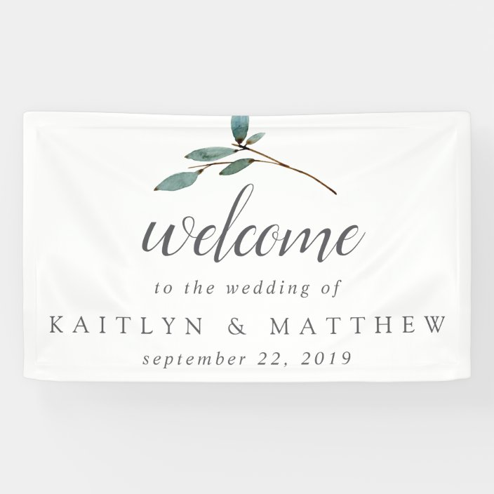 Watercolor Floral White Green Wedding Welcome Banner Zazzle Com