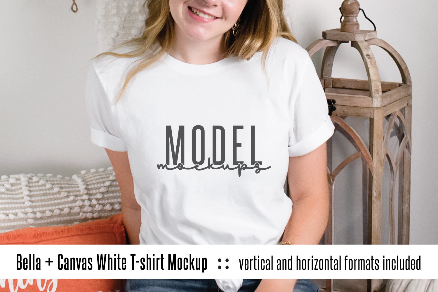 Bella Canvas White Fall Tshirt Model Mockup Clothing Design Bundles