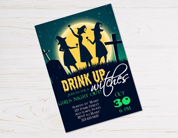 Drink Up Witches Invitation Halloween Witch Invitation Girls Etsy
