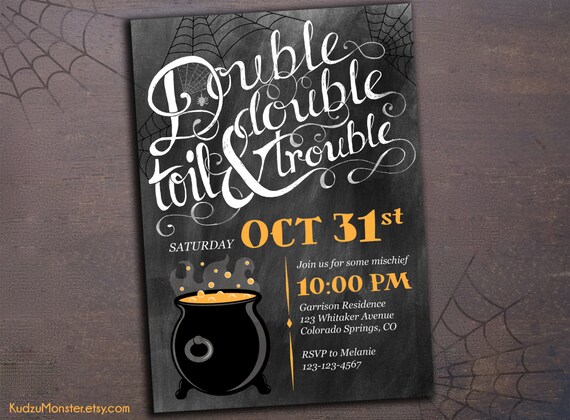Halloween Invitation Chalkboard Hand Lettered Macbeth Witches Etsy