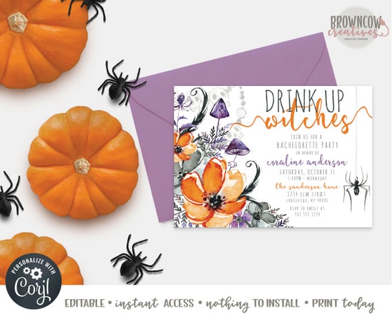 Drink Up Witches Invitation Halloween Invitation Halloween Bachelorette Party Invitation Halloween Bridal Shower Invitation Girls Night By Browncow Creatives Catch My Party