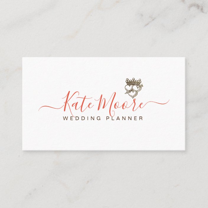 Triple Hearts Crown Script Wedding Planner Business Card Zazzle Com