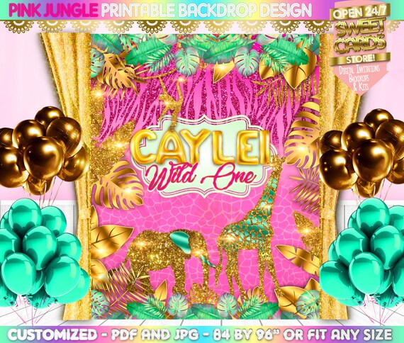 Pink Safari Jungle Printable Backdrop Girl Safari Backdrop Etsy