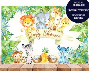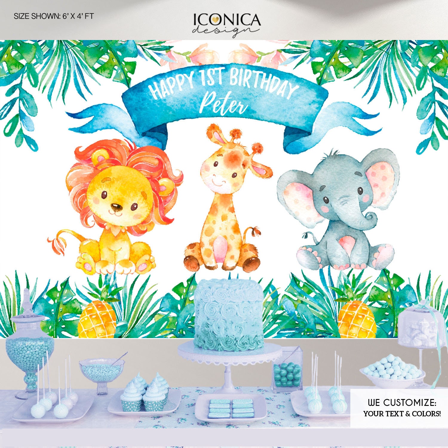Safari Backdrop Party Animals Backdrop Personalized Safari Banner Jungle Animals Backdrop Watercolor Animals Banner Printed Digital d00