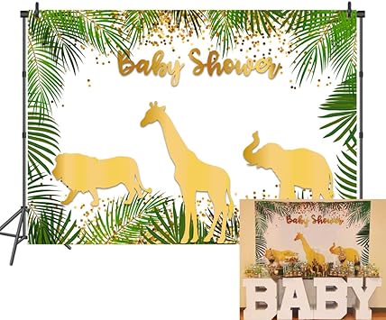 Amazon Com Mehofoto Safari Baby Shower Backdrop Gold Animals Step And Repeat Vinyl Background 7x5 Jungle Animal Photo Booth Backdrop For Cake Table Decorations Camera Photo