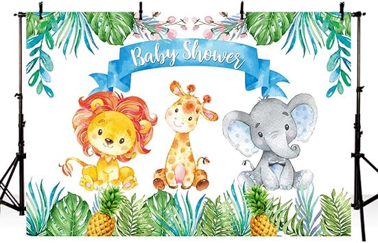 Amazon Com Mehofoto 7x5ft Safari Jungle Boy Baby Shower Party Backdrop Blue Prince Green Leaves Jungle Animals Pineapple Photography Background Photo Banner For Cake Table Supplies Camera Photo