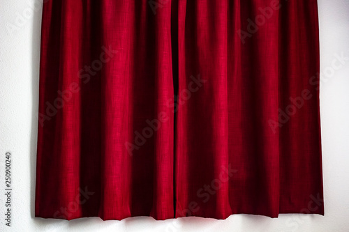 Red Curtains Of Thick Fabric Completely Cover The Window And Create A Private Atmosphere Against The Background Of A White Wall Wallpaper Buy This Stock Photo And Explore Similar Images At