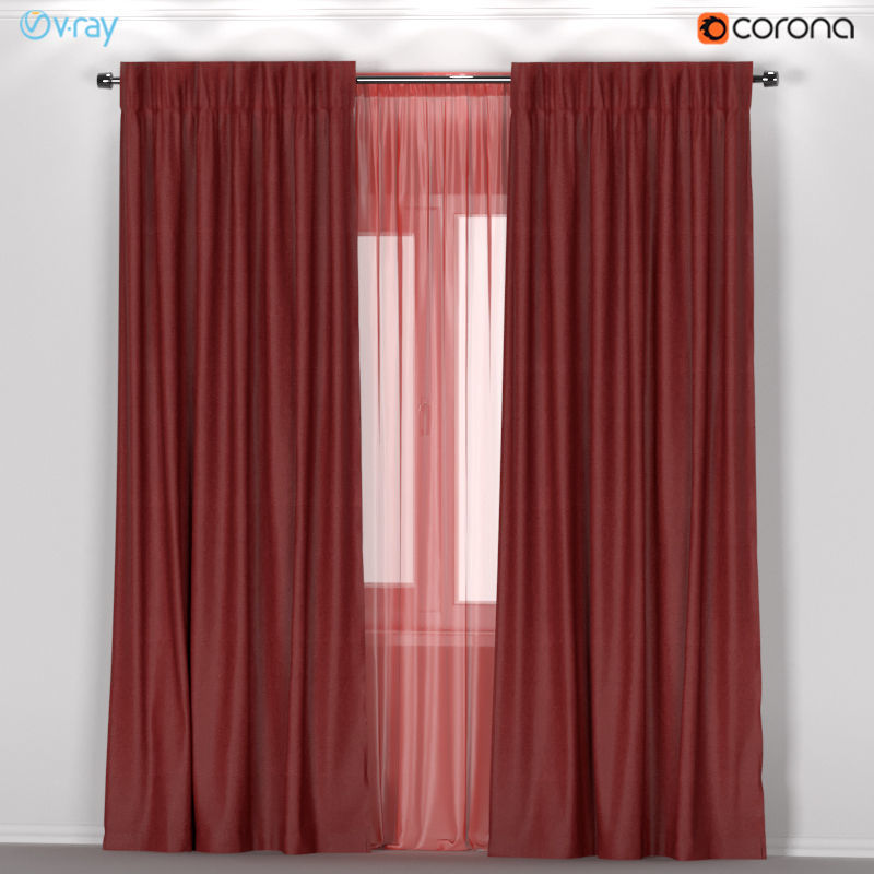 3d Model Ikea Annacaise Brown Red Thick Curtains Made Of