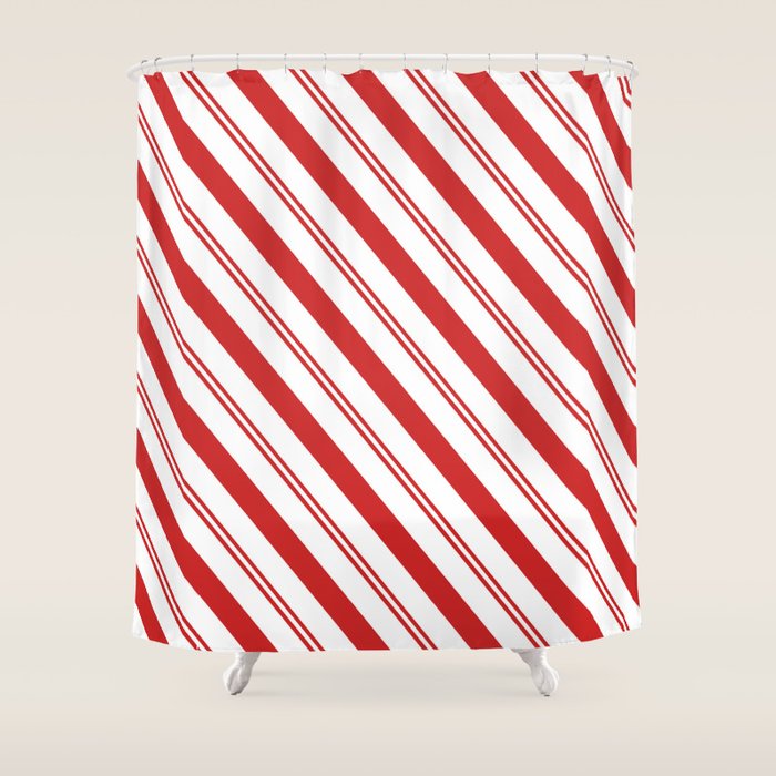 Red And White Candy Cane Stripes Thick And Thin Angled Lines Festive Christmas Shower Curtain By Pipafineart Society6