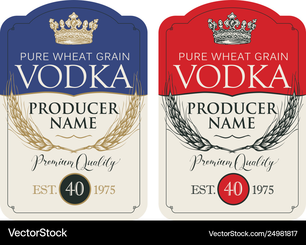 Labels For Vodka With Ears Wheat And Crown Vector Image